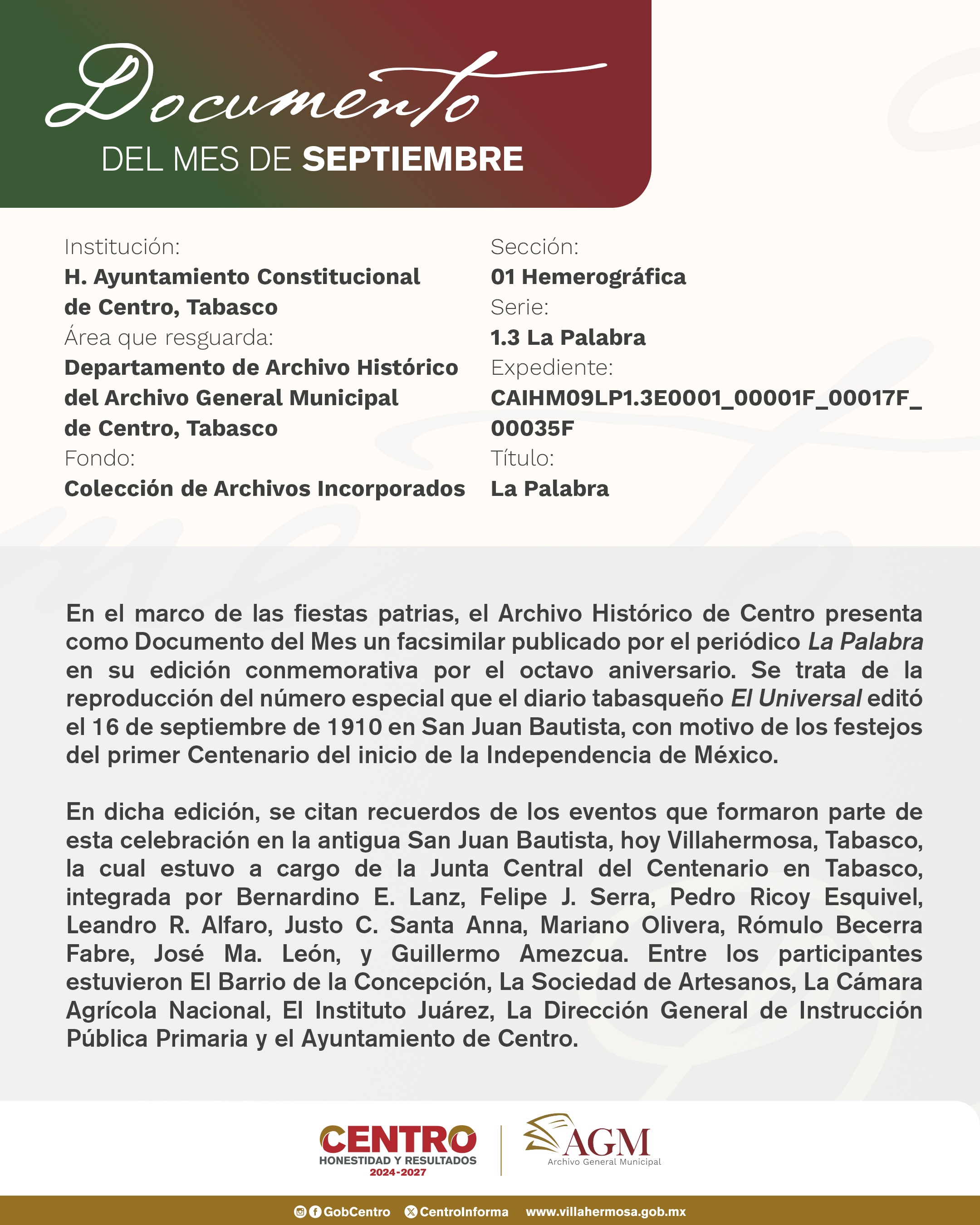 © Archivo General Municipal de Centro | Aviso de privacidad